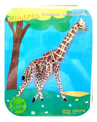 Animales De Madera Para Armar Encastrables Cresko Ft332 Color Amarillo Jirafa