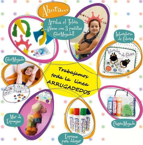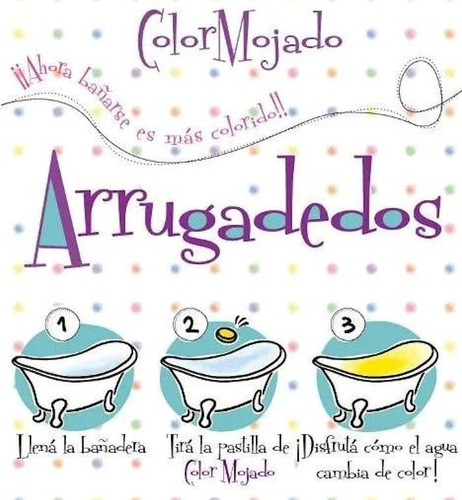 Color Mojado: pastillas, con un toque de efervescencia, que dan color al agua de la bañadera, vienen en los tres colores primarios (rojo, azul y amarillo), que al mezclarlos dan como resultado los colores secundarios (verde, violeta y naranja).