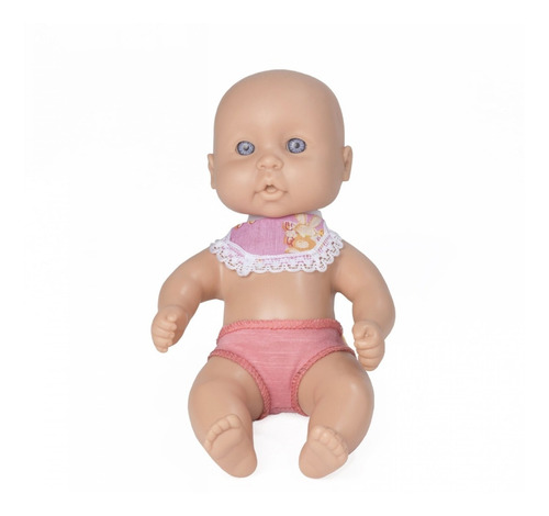 Bebe bebito de plastisol con ojos abiertos, con bombacha y babero.