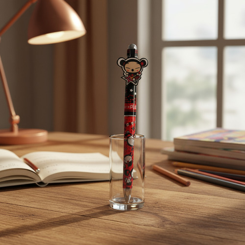 El diseño atractivo de esta lapicera refleja la esencia divertida de Pucca, haciendo de cada tarea de escritura una experiencia amena. Hecha de materiales de plástico y metal, su durabilidad se suma a su estética, convirtiéndola en un accesorio indispensable en cualquier escritorio o bolso. Además, su formato en bolsa facilita el transporte, ideal para llevar a la escuela, la oficina o durante viajes.