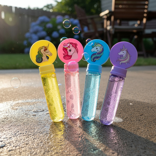 Con un formato compacto, el Burbujero Unicornio es un excelente souvenir infantil que encantará a los niños y a sus padres. Fomenta la interacción social y el juego al aire libre, convirtiendo cada momento en una experiencia mágica llena de risas y alegría. Ideal para cumpleaños, celebraciones o simplemente para disfrutar de un día soleado.