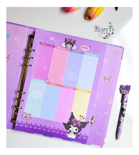 Carpeta Organizadora Anillada Kuromi 27x22cm Cuaderno Rosakuro2