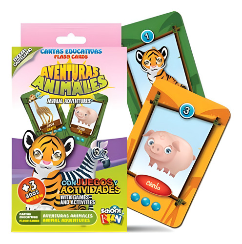 Cartas educativas infantiles didácticas Aventuras Animales con juegos + actividades School Fun
