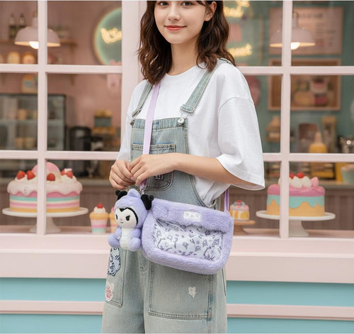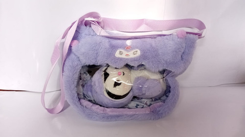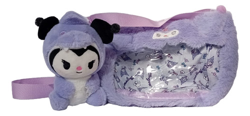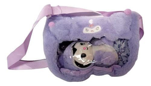 Cartera De Peluche Kuromi Con Muñeco Correa Regulable Lila Kuromi Dino Blanco Lila