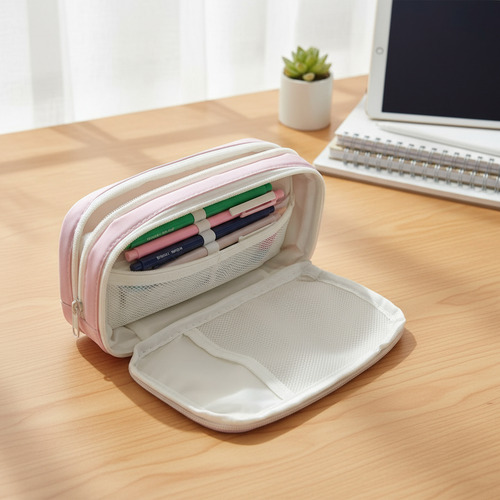 Ideal para estudiantes de todas las edades, su atractivo color rosa añade un toque de estilo a la rutina escolar. La cartuchera no es extensible, lo que la hace aún más fácil de manejar y transportar.