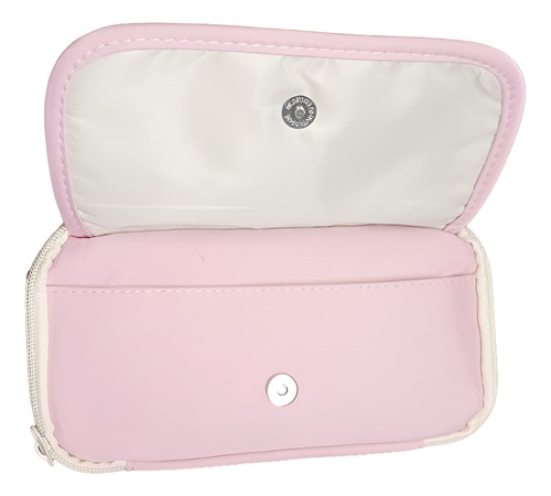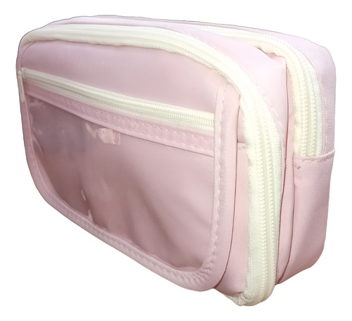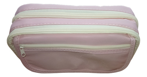 Cartuchera 2 Niveles 6 Bolsillos Tela Super Resistente Rosa Rosa Liso