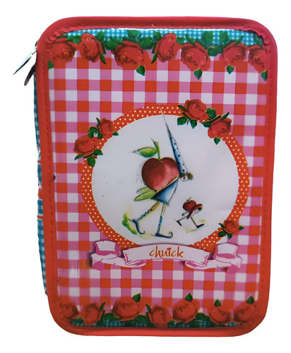 Cartuchera 2 Pisos Chuick rosas cuadrille con elasticos
