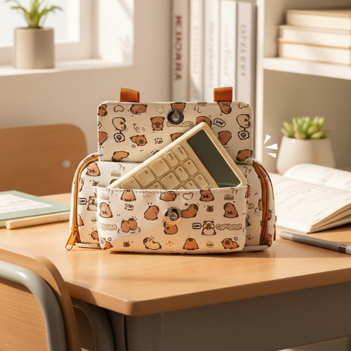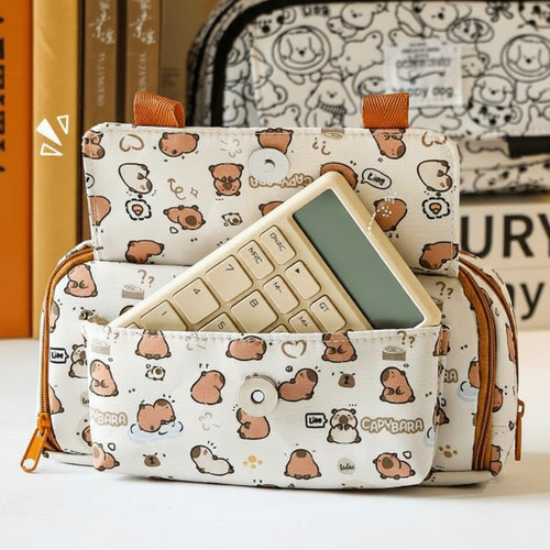 Fabricada en tela de alta calidad, la cartuchera Capibara es resistente y fácil de limpiar, lo que garantiza su durabilidad a lo largo del tiempo. Su diseño no extensible asegura que los útiles se mantengan en su lugar, evitando desorden y facilitando el acceso rápido a lo que necesitas. Ideal para estudiantes de todas las edades, esta cartuchera combina funcionalidad y un estilo único que hará que cada día de clases sea más agradable.