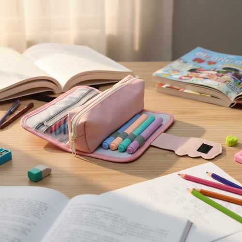 Con tres compartimentos, ofrece un amplio espacio para lápices, bolígrafos y otros accesorios, facilitando el acceso a lo que necesitas en cada momento. Su material de tela garantiza durabilidad y resistencia, ideal para el uso diario en el colegio o en casa.
