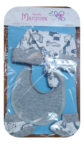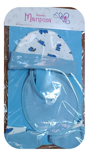Conjunto Para Bebote Gorro Babero Y Escarpines Muñecas Celeste