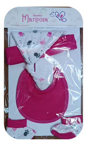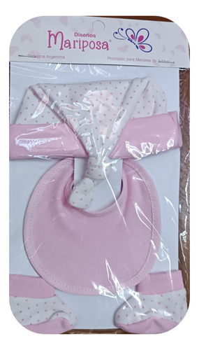 CONJUNTO PARA BEBOTE GORRO BABERO Y ESCARPINES DE ALGODON
