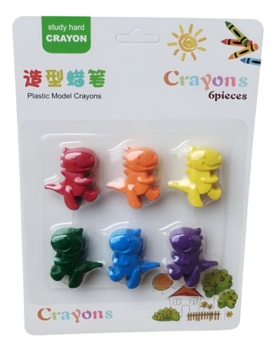 Crayones De Dinosario Para Pintar Infantil 6 Colores Multicolor
