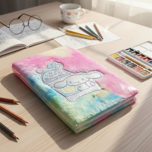 Descubre el cuaderno con tapa de peluche Cinnamonroll, un accesorio ideal para estudiantes y amantes de la escritura. Con un diseño rayado, este cuaderno combina funcionalidad y estilo, permitiendo que cada página sea un espacio perfecto para tus notas, dibujos o pensamientos.