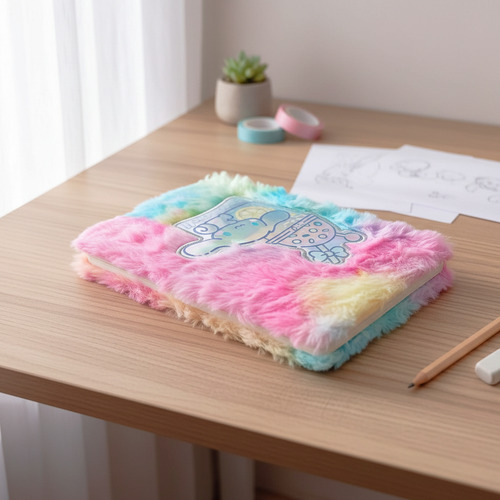 El suave peluche de la tapa no solo añade un toque de ternura, sino que también proporciona una experiencia táctil agradable. Este cuaderno es ideal para el entorno escolar, donde la creatividad y la organización son esenciales para el éxito académico.