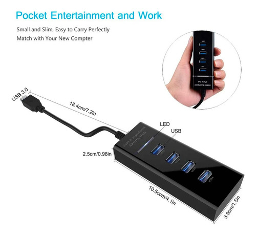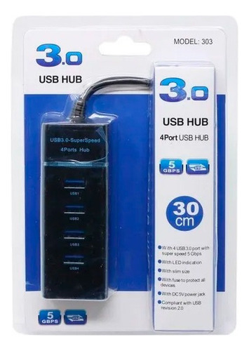 Hub Usb 3.0 4 Puertos Super Speed 5gbps Led Multiplicador Negro