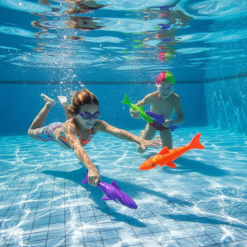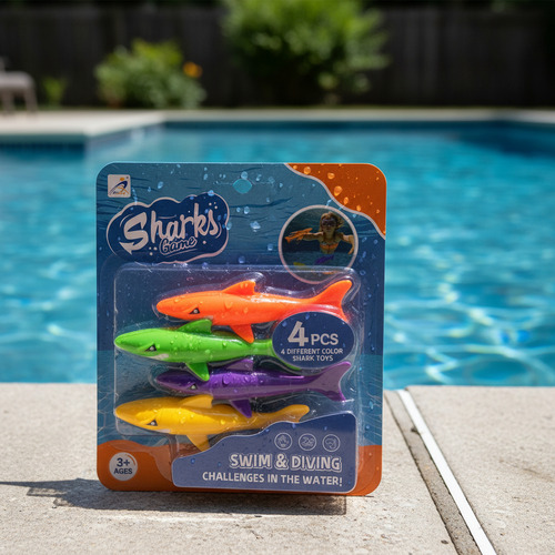 Estos Tiburones de buceo han sido diseñados con diferentes pesos y colores que se puedan distinguir bien dentro del agua. ¡Lánzalos y disfruta de un gran día de piscina!