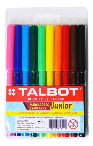 Marcadores Surlatina Talbot Junior 10 Colores Punta Pincel Lavables