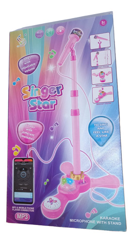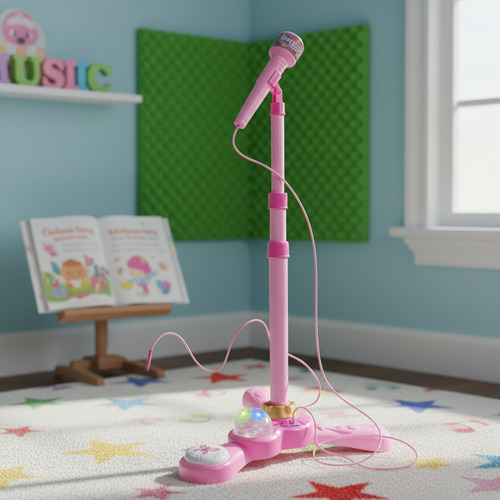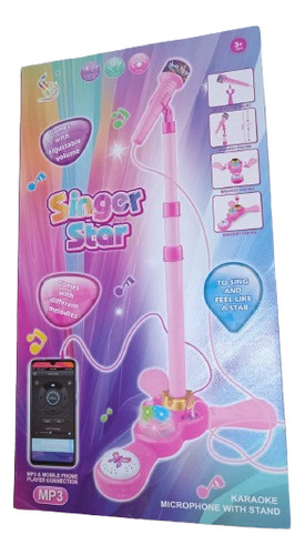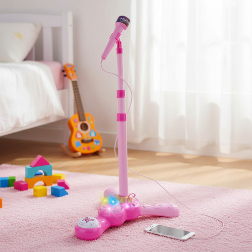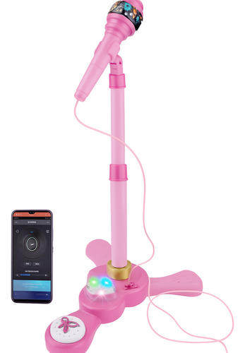 Microfono Musical De Pie Con Luces Conecta Tu Musica Rosa