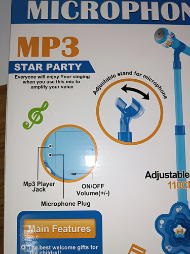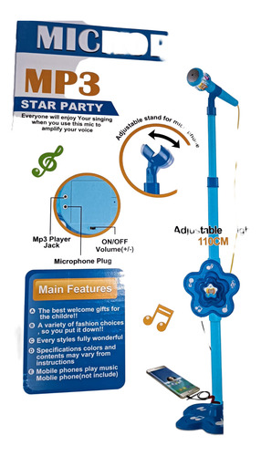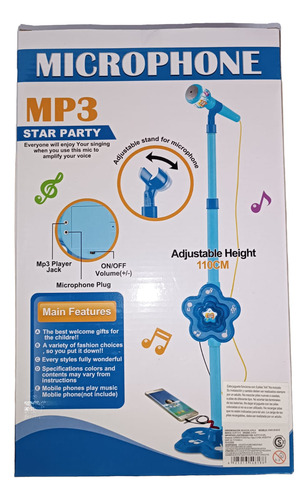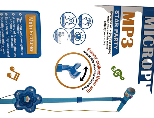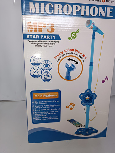 Presentamos el micrófono musical de pie en un atractivo color celeste, diseñado especialmente para los pequeños artistas de 3 a 10 años. Este producto de la marca Sur Toys es ideal para fomentar la creatividad y la expresión musical en los niños, permitiéndoles conectar su música favorita y disfrutar de una experiencia interactiva.