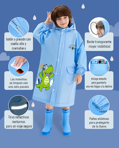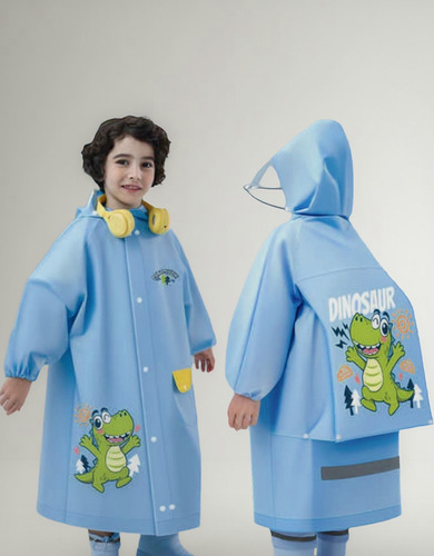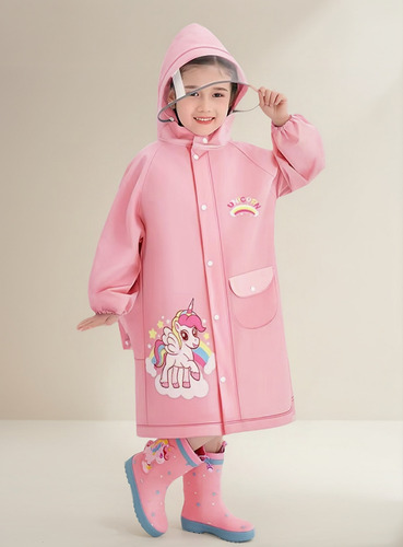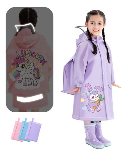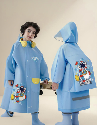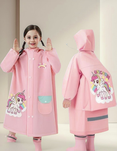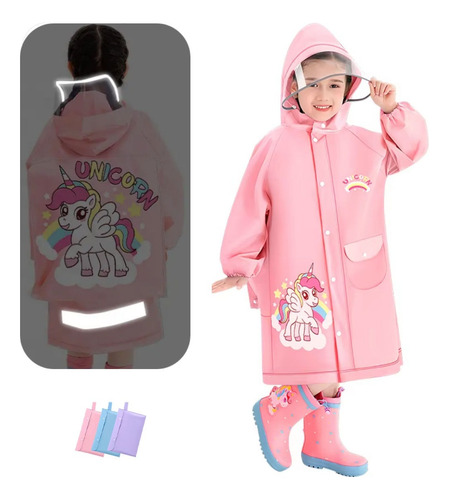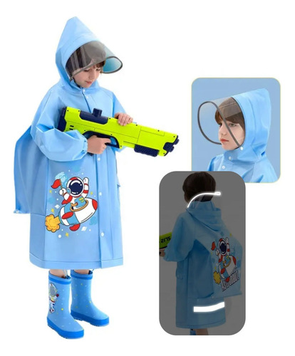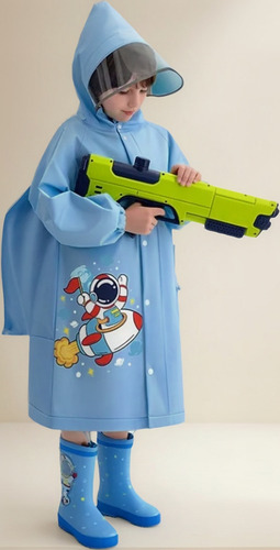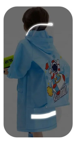 PILOTO INFANTIL IMPERMEABLE – Con solapa para Mochila, visera Transparente para facilitar la vision al caminar. Cinta reflectiva para que sea mas visible a los automoviles. Incluye estuche para Guardarlo.