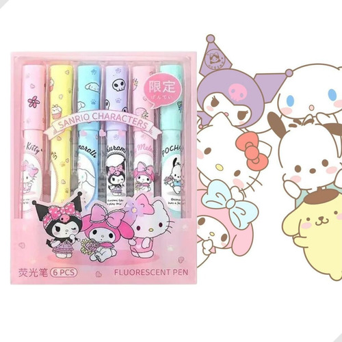 Personajes: Hello Kitty, Kuromi, My Melody, Cinnamoroll, Pompompurin, Pochacco
