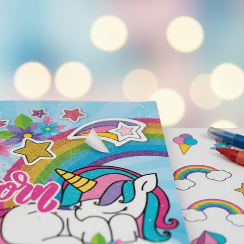 TABLERO DE ARTE PARA COLOREAR UNICORNIO CON STICKERS